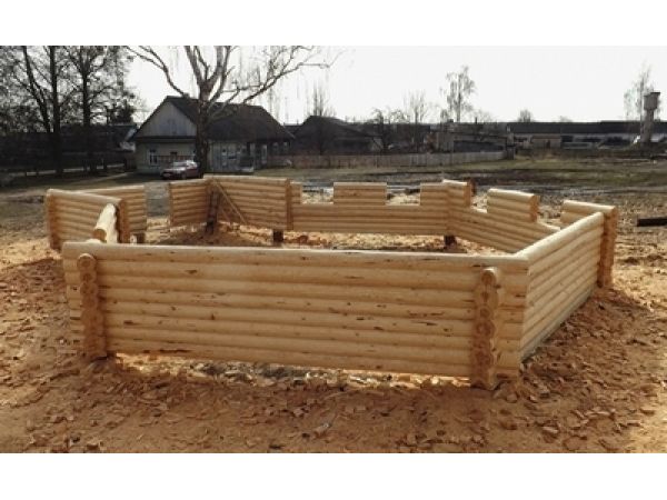 Эксклюзивный сруб бани в форме шестиугольника.