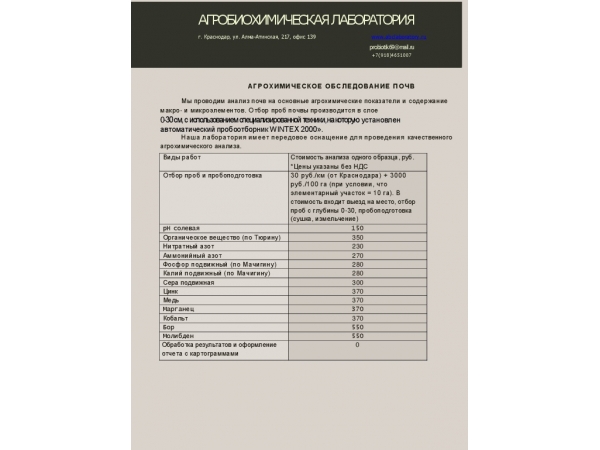 Услуги по агрохимическому обследованию почвы