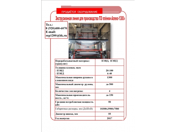 Экструзионная линия для производства полиэтиленовой пленки