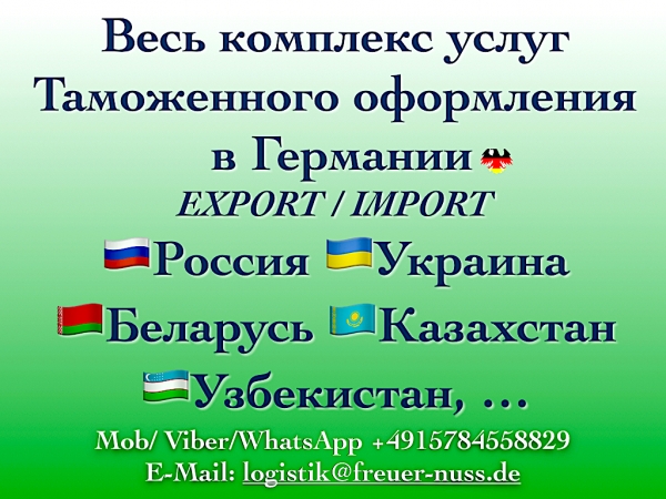 Таможенный брокер в Германии и ЕС! Работаем на результат! Гарантия!