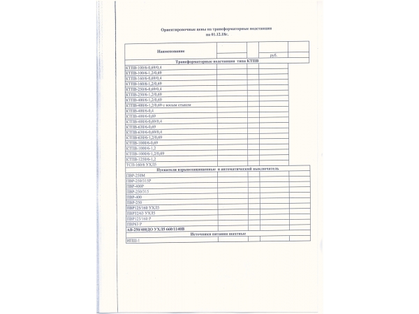 Предприятие изготовитель реализует Трансформаторные подстанции, пускат