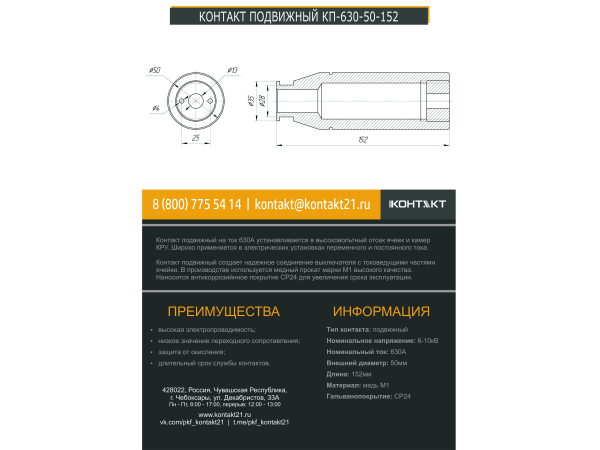 КОНТАКТ ПОДВИЖНЫЙ КП-630-50-152