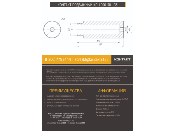 КОНТАКТ ПОДВИЖНЫЙ КП-1000-50-135
