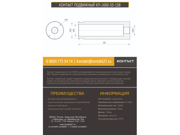 КОНТАКТ ПОДВИЖНЫЙ КП-1600-55-158