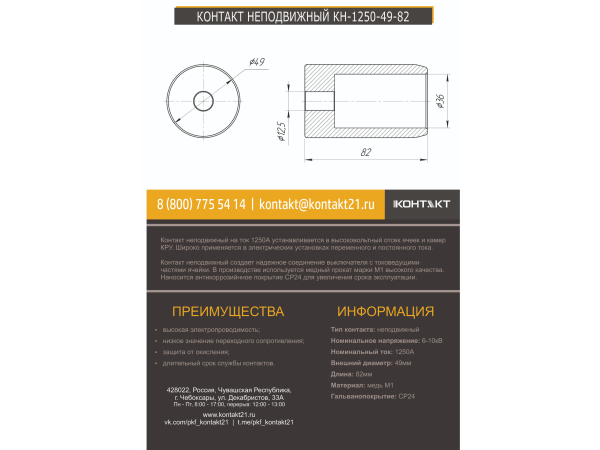 КОНТАКТ НЕПОДВИЖНЫЙ КН-1250-49-82