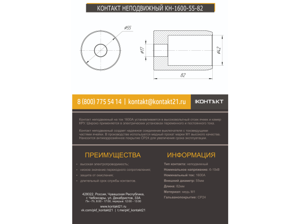 КОНТАКТ НЕПОДВИЖНЫЙ КН-1600-55-82