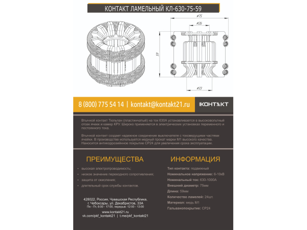 КОНТАКТ ЛАМЕЛЬНЫЙ КЛ-630-75-59