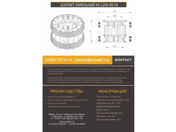КОНТАКТ ЛАМЕЛЬНЫЙ КЛ-1250-89-59