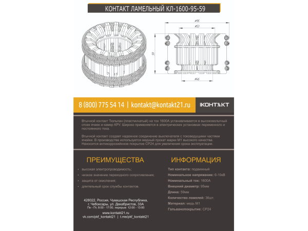 КОНТАКТ ЛАМЕЛЬНЫЙ КЛ-1600-95-59
