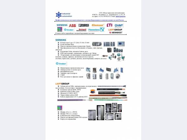 Индустриальная автоматизация, ООО Челябинск, Челябинск, Магнитогорск, Курган, Пермь, |