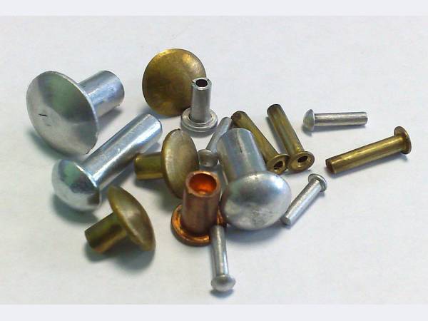 - Заклёпки D2 ... D6 (ГОСТ 10299, 10300, 10301, 10302, 10303), материал: сталь, медь, латунь, алюминий.