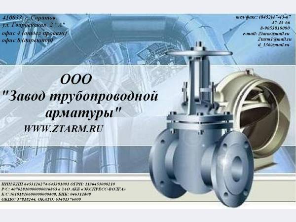 Metaprom.ru / Каталог поставщиков / Трубопроводная арматура / Трубопроводная арматура в Саратовской области / Завод трубопроводной арматуры, ООО