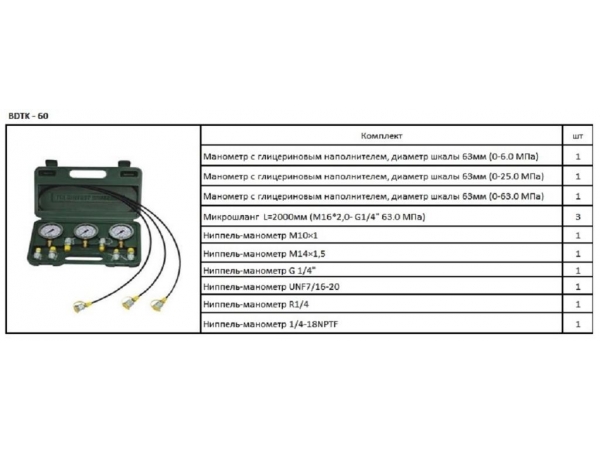 Набор для тестирования гидравлической системы BDTK-60 15.11.2017
