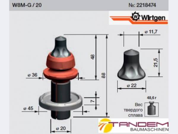 Резцы Wirtgen W8M-G/20 и W8M/20 для дорожных фрез. 13.04.2018