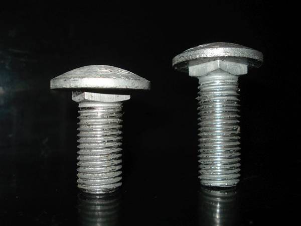 Болт дорожный с увеличенной полукруглой головкой и уменьшенным квадратным подголовком 5 мм, класса точности С, диаметром резьбы 16 мм, длиной 45 и 35 мм класса прочности 5.8. по ГОСТ 7802, DIN 603, ТУ с гальваническим и горячеоцинкованным покрытием.