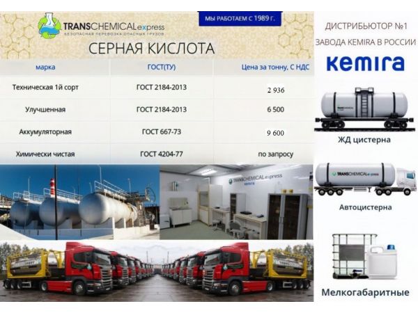 Серная кислота (1 сорт, улучшенная, ХЧ, аккумуляторная) 23.07.2019