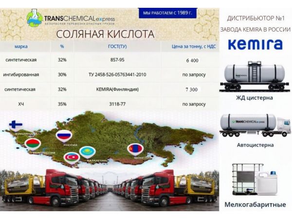 Компания "ТРАНСКЕМИКЛ-экспресс" - безопасная доставка химических веществ 5 и 8 классов опасности: щелочей, кислот и солей, - оптом и в розницу на территории России, а также в страны СНГ.