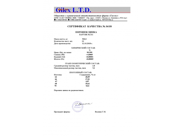 изотон цинка Zn- 66