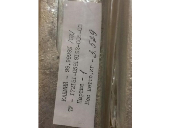 Кадмий особой чистоты марки 6N, 99.9999%