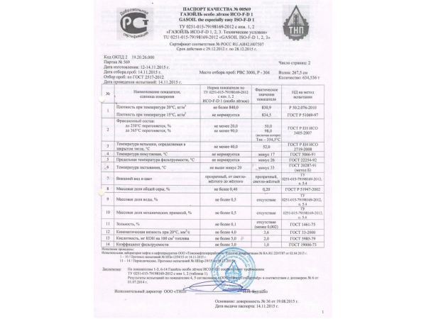 Дизель ТУ От НПЗ ЯЯ