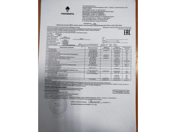 Дизельное топливо Евро Роснефть ЛЕТО
